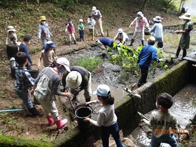 ドングリランドの森づくり「トンボ池のかいぼりと生物観察」