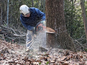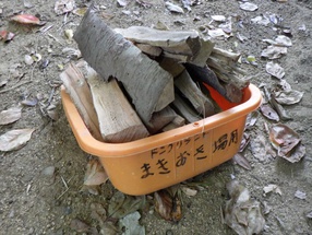 今回、里山を学ぶ一環として伐採体験をご用意しました。伐採を見学した後で薪を運び出し、斧と薪割り機で薪づくりを体験します。参加された方は、ご用意した薪一束をお持ち帰りできます。