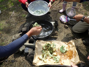 参加者さんみんなで焚火でつくって、森の中でいただくお昼ご飯も毎回大好評です!
