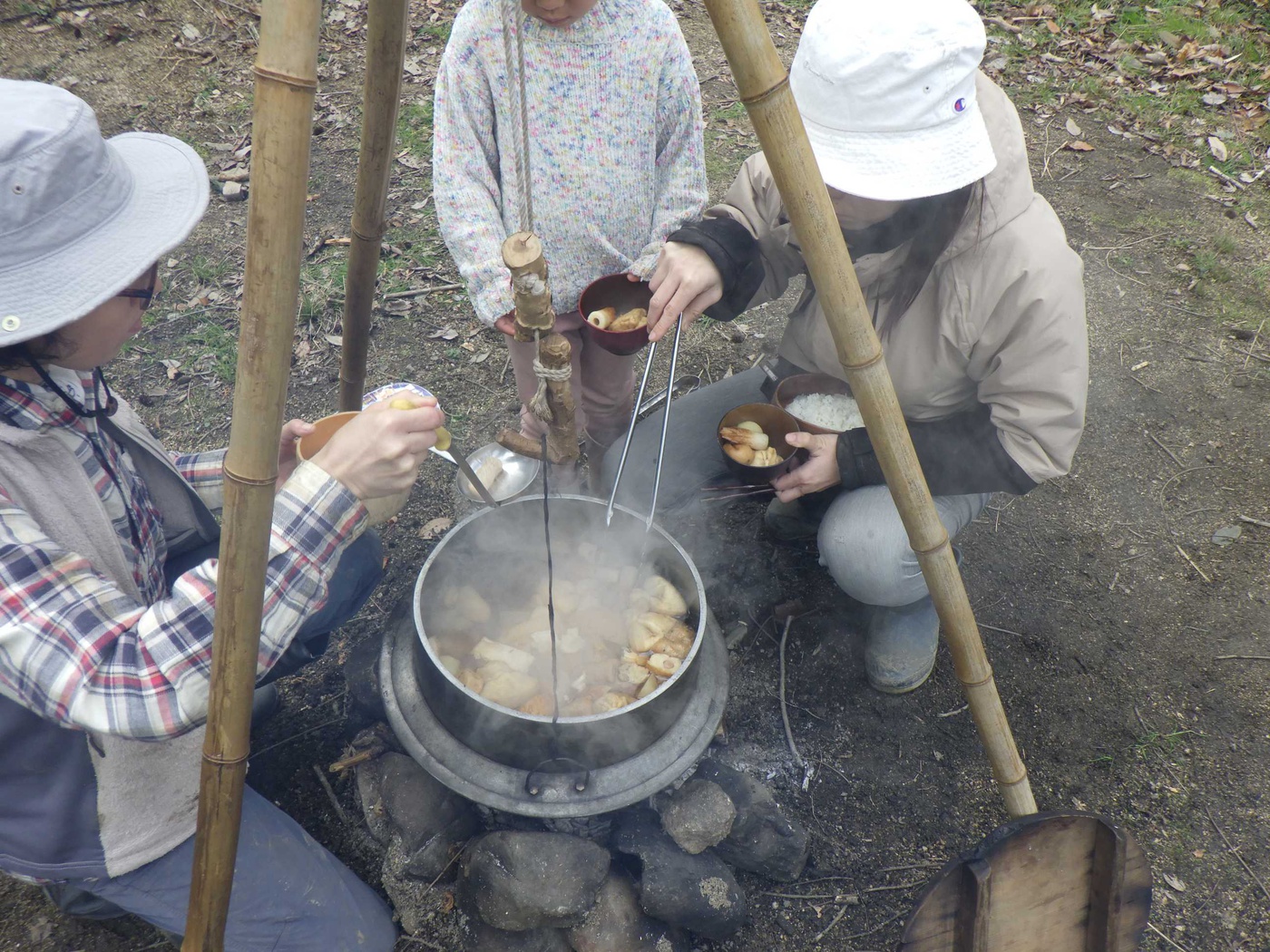 みんなで焚火をつかって、森の中でいただくお昼ご飯も毎回大好評です!