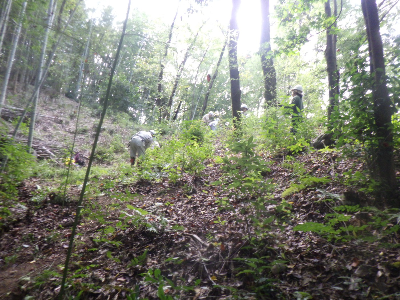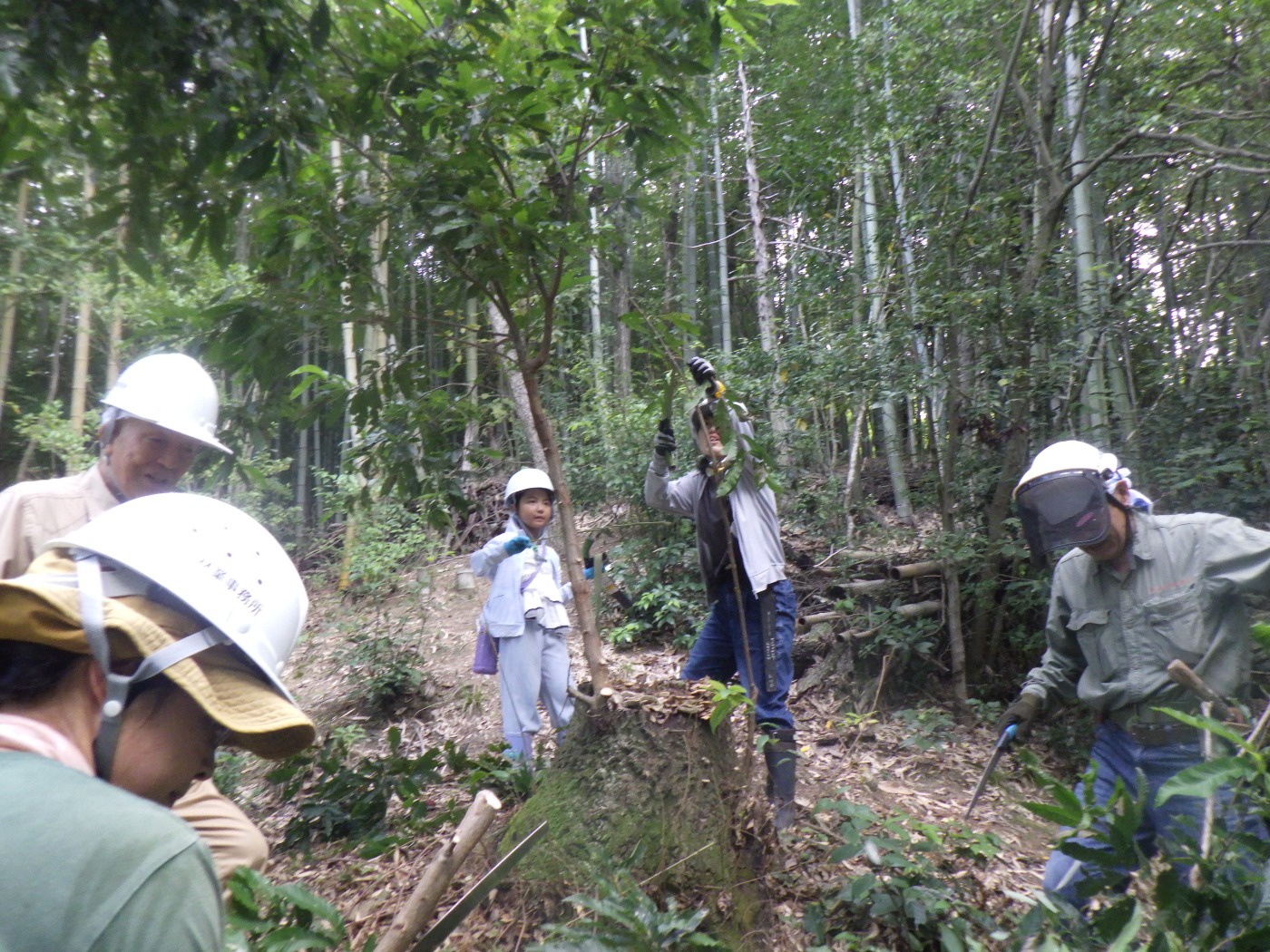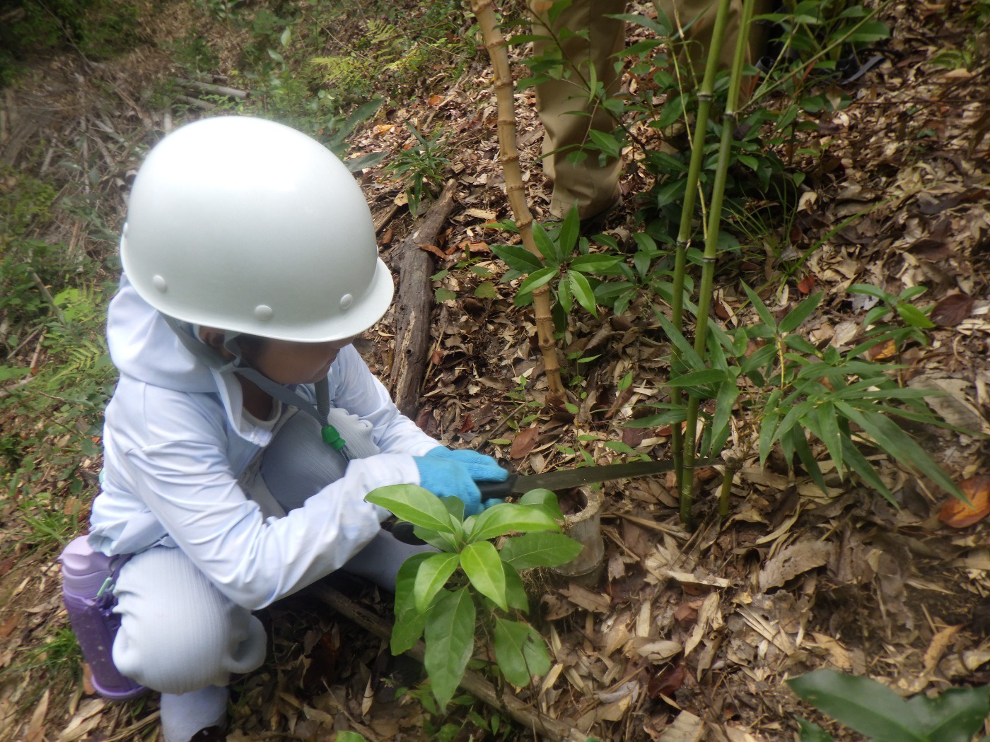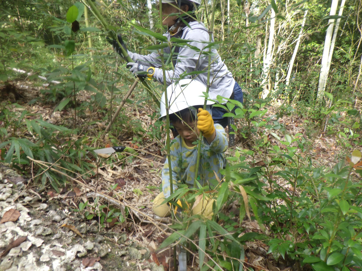 今回は植樹した木の周りの細い竹や常緑樹を切りました。