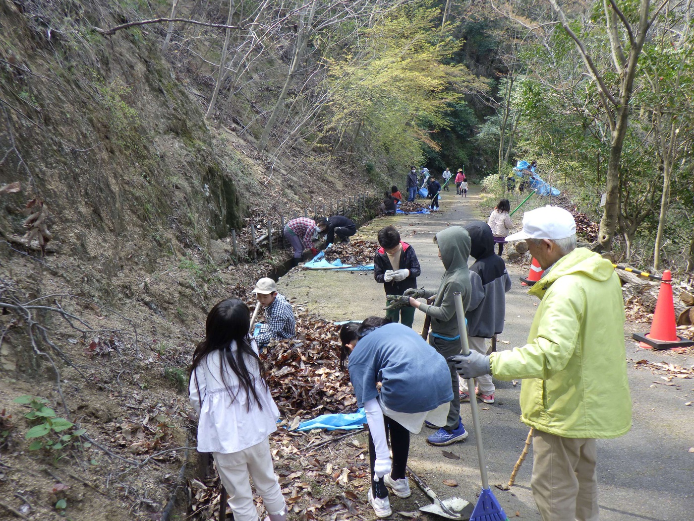 森落ち葉は、豊かな土を育み、森を元気にしたり、綺麗な水を育んでくれます。そんな大切な落ち葉が、管理道の側溝に詰まり、森が育んでくれた綺麗な水の流れをせき止めてしまっています。そこで、今回は側溝の土砂・落ち葉かきを中心とした清掃活動をします。ただ掃除するのではなく、春を感じながら、落ち葉や土の中に住んでいる生き物を観察しながら、自然と触れ合いましょう!