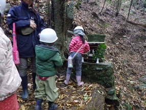ドングリランドの森の奥に、山の神さんが祭られています。昔から地元の人たちが山仕事の無事を祈ってお祭りしてきた、由緒ある神様です。そしてドングリランドで森歩きするみなさんをいつも見守ってくださっています。そんな山の神さんについてもっと知りたくなって、12月14日、ドングリランドで「みどりの学校 山と里の神様のおはなし」を開催しました。